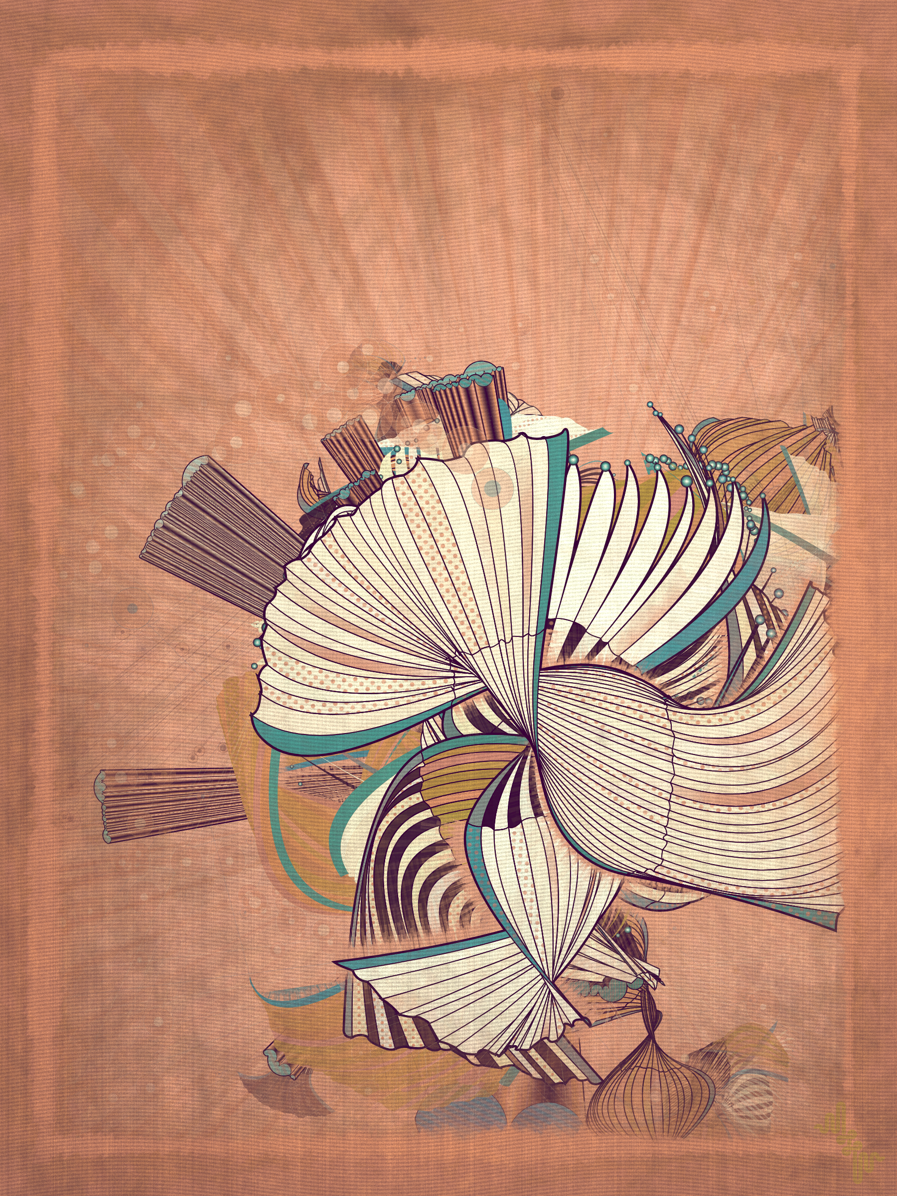 The original ideas evolved by Abstract expressionism and Pop art tell very different stories in the history of post war American art. My approach however is more about just stealing from the visual lexicon of mark-making that characterizes these artistic movements ignoring much of the contextual conversations around them . When I started out building my first primitive for Velum I was picturing in my mind something that looked more like a gestural paint-stroke typical of abstract expressionistic painting. Adding Pop art stylized outlines to the structures however separated them from the background and gave them a floating quality. Liking this effect I quickly forgot about my first idea of making paint strokes to explore the emerging curtain-like elements and found ways to make them dance.