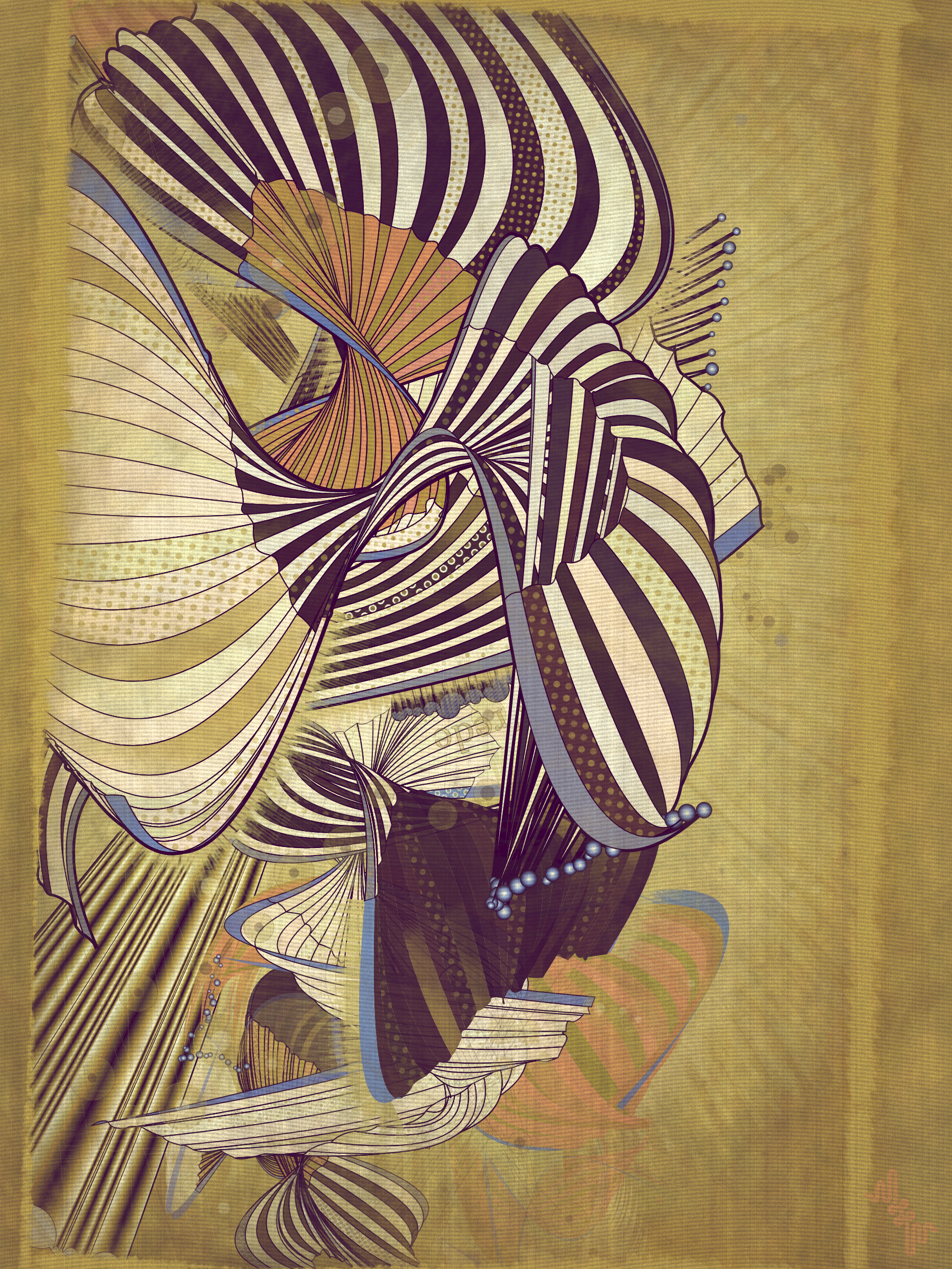 The original ideas evolved by Abstract expressionism and Pop art tell very different stories in the history of post war American art. My approach however is more about just stealing from the visual lexicon of mark-making that characterizes these artistic movements ignoring much of the contextual conversations around them . When I started out building my first primitive for Velum I was picturing in my mind something that looked more like a gestural paint-stroke typical of abstract expressionistic painting. Adding Pop art stylized outlines to the structures however separated them from the background and gave them a floating quality. Liking this effect I quickly forgot about my first idea of making paint strokes to explore the emerging curtain-like elements and found ways to make them dance.