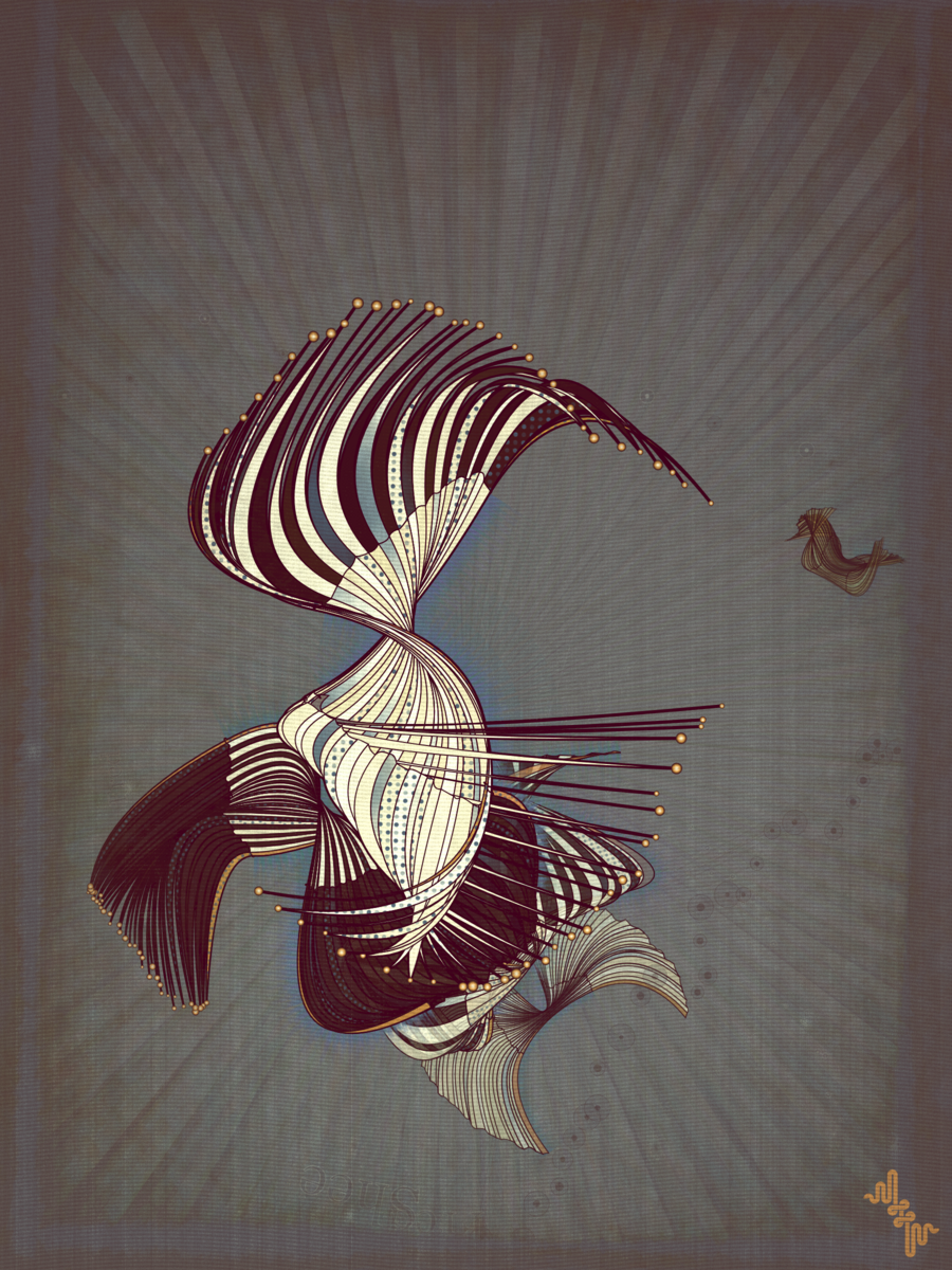 The original ideas evolved by Abstract expressionism and Pop art tell very different stories in the history of post war American art. My approach however is more about just stealing from the visual lexicon of mark-making that characterizes these artistic movements ignoring much of the contextual conversations around them . When I started out building my first primitive for Velum I was picturing in my mind something that looked more like a gestural paint-stroke typical of abstract expressionistic painting. Adding Pop art stylized outlines to the structures however separated them from the background and gave them a floating quality. Liking this effect I quickly forgot about my first idea of making paint strokes to explore the emerging curtain-like elements and found ways to make them dance.